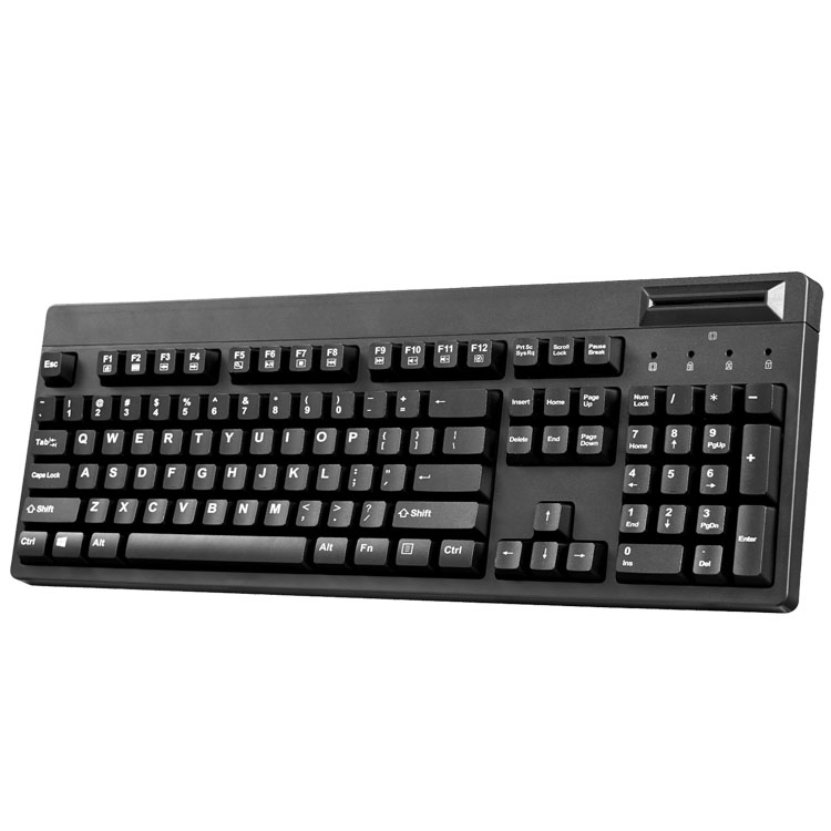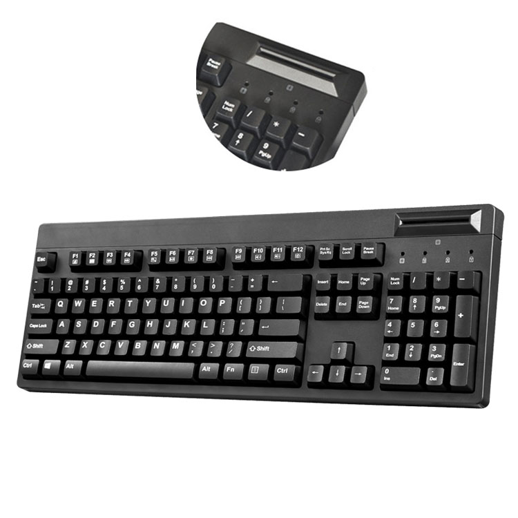 LIF Easy Touch 104 Industrial Membrane Keyboard with Smart Card Reader features a 104 key full size keyboard layout with a built-in smart card reader for banking transactions, identification systems, secure web applications, and secure logon. The built-in multi-functional hotkeys allow quick access to your multimedia controls and Internet browser commands. The keys are designed with Membrane Switch keys, bringing a more comfortable, quieter, typing experience. This Industrial Membrane SCR keyboard is ideal for use in POS, kiosks, ware houses, manufacturing environments or any small working area.